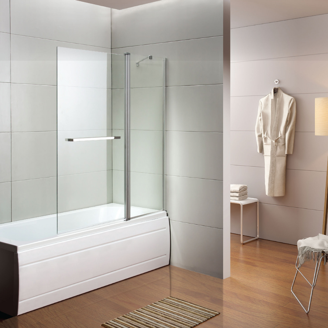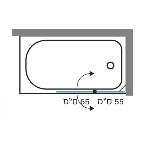 אמבטיון מבנה: דלת על ציר רוחב 65 ס”מ, נפתחת פנימה והחוצה ודופן קבועה, רוחב 55 ס”מ. גובה 140 ס”מ. פרזול: צירי HI-PRO עולים בפתיחה ויורדים בזמן סגירה לאטימות מירבית. מוט תמיכה מעוצב, ידית מתלה מגבת, מגבי אטימה. פרופיל כרום מרובע. זכוכית: 6 מ”מ מחוסמת, שקופה או סטריפ-ליין.