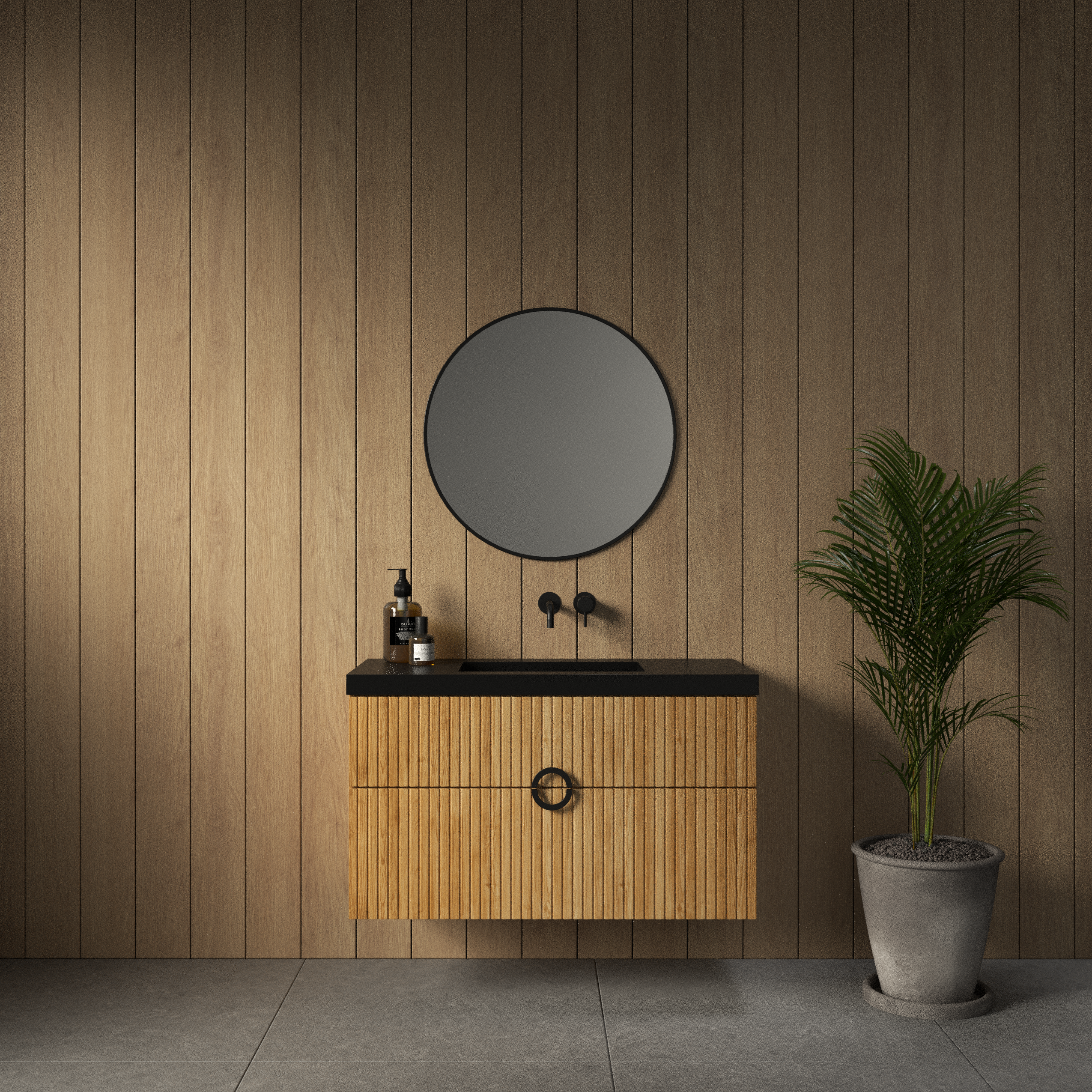 משטח בוצ׳ר עץ אלון / כיור חרס אינטגרלי סקיני לבן / כיור חרס אינטגרלי לואי לבן