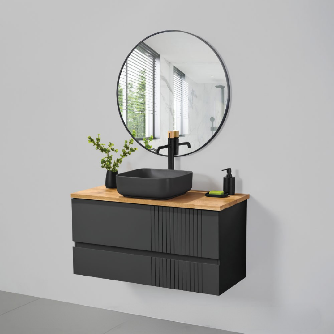 ארון תלוי מידה 92 ס"מ דגם אלן עם כיור סקיני חרס לבן.