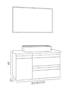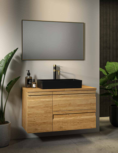 ארון מיכאל תלוי, גוף הארון עץ סנדוויץ איכותי בגימור עץ מלא. משטח בוצ’ר עץ אלון + כיור חרס מונח/כיור חרס אינטגרלי סקיני לבן/ כיור חרס אינטגרלי לואי לבן. עם משטח בוצ’ר ניתן לבחור כיור חרס מונח לבן מבריק מכל מבחר הכיורים המונחים של סיוון אופיר או כיור חרס מונח בכל צבע אחר בתוספת מחיר. מגירות עם טריקה שקטה – SOFT CLOSING. מראה: קריסטל מלבנית/עגולה מרחפת. ניתן לשדרג מראה בתוספת תשלום. לא כולל ברז