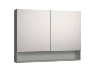 ארונית מראה עם 2 דלתות זכוכית ומדף פתוח.