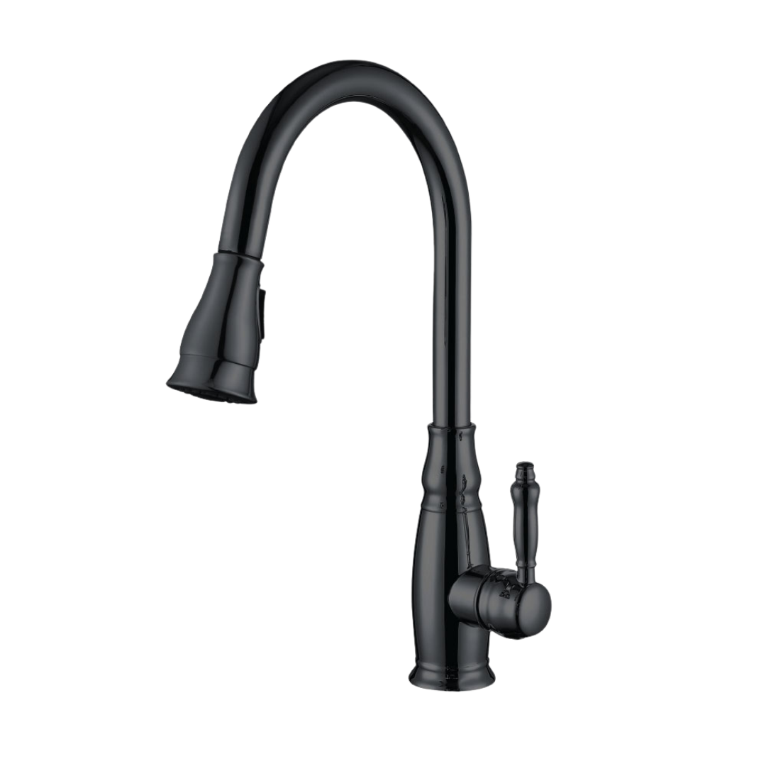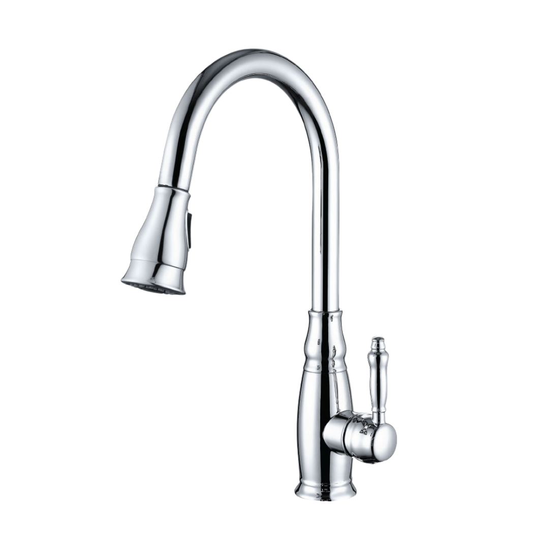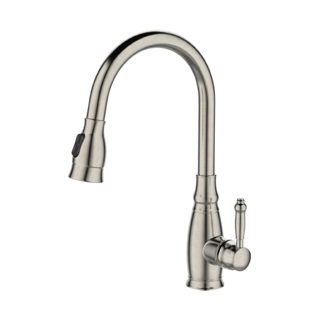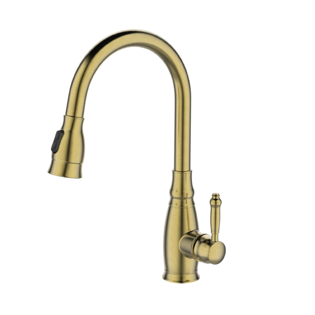 ברז מטבח בסגנון רטרו עם פיה נשלפת וידית מעוצבת