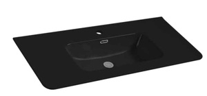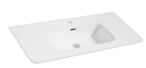 כיור חרס אינטגרלי סקיני בעל פינות מעוגלות.