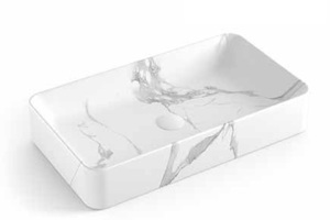 כיור חרס מונח מלבני.