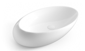 כיור חרס מונח צורת סירה.