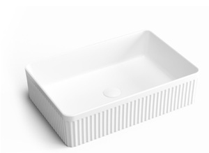 כיור חרס מונח מלבני עם פסים.