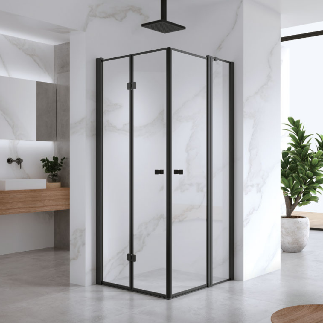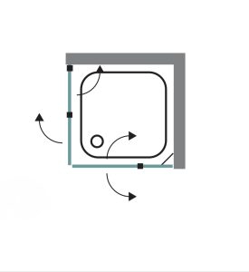 מבנה: דלת על ציר, נפתחת פנימה והחוצה עם דופן קבועה ודלת הרמוניקה מתקפלת ונצמדת לקיר. גובה 190 ס”מ. להתקנה על גבי ריצוף או אגנית.