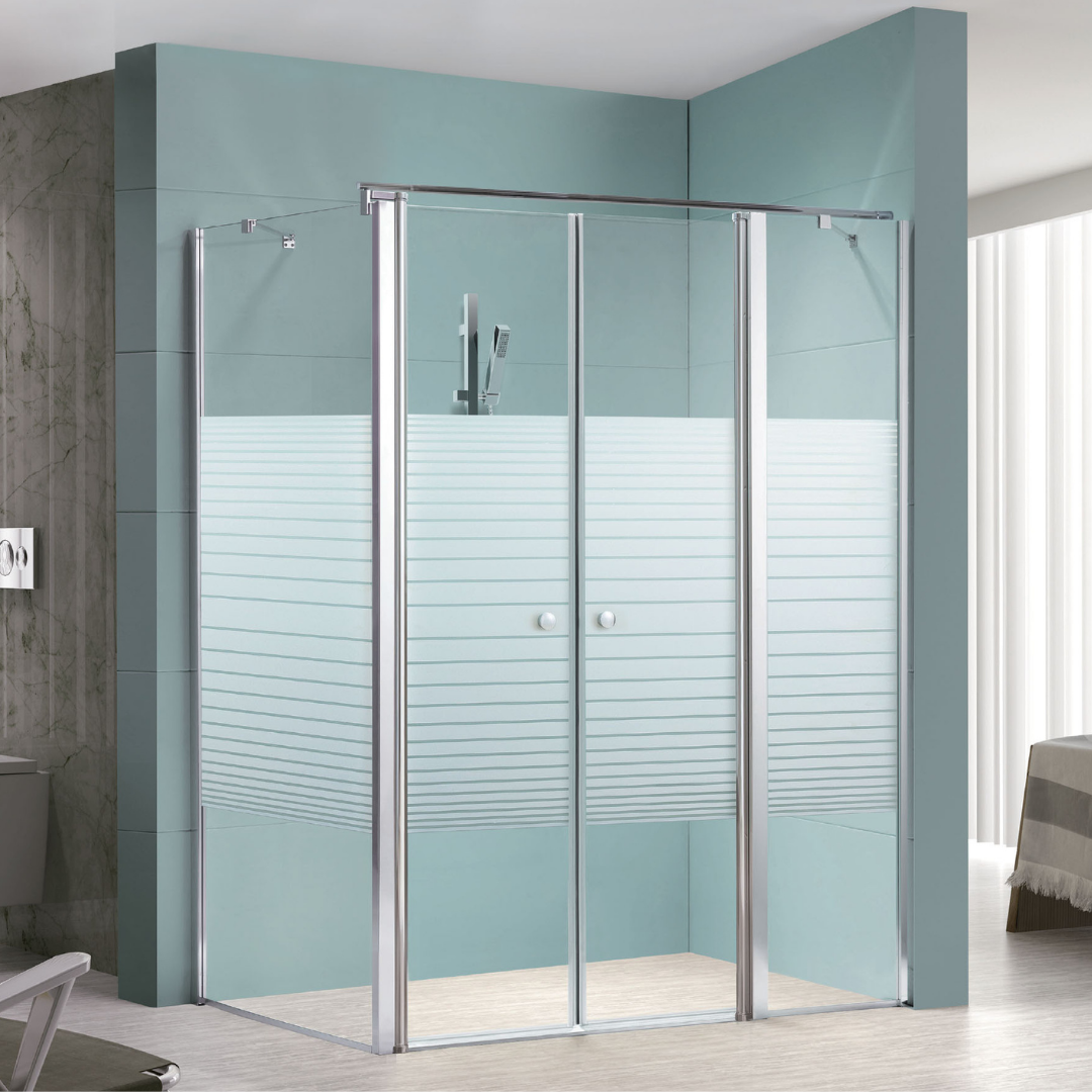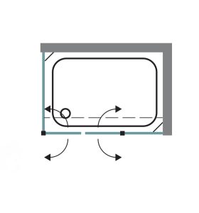 מבנה: 2 דלתות על ציר, נפתחות פנימה והחוצה ו2- דפנות קבועות. גובה 185 ס”מ. להתקנה על גבי ריצוף או אגנית.