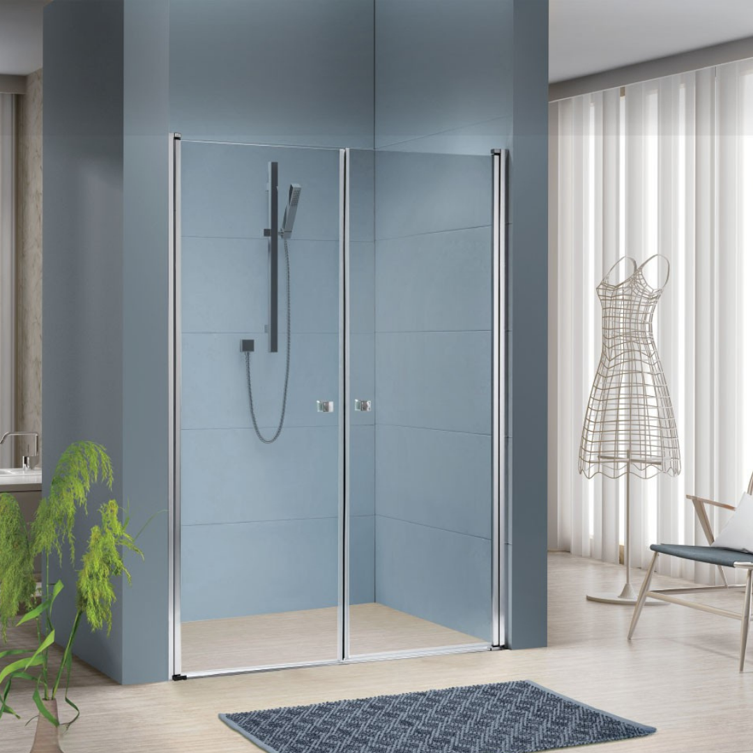 מבנה: 2 דלתות על ציר, נפתחות פנימה והחוצה ודופן אחת קבועה. גובה 190 ס”מ. להתקנה על גבי ריצוף או אגנית.