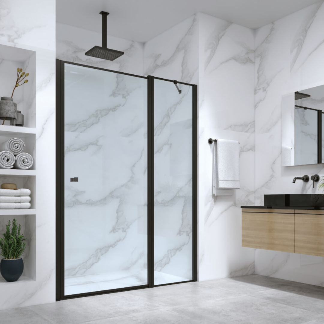 מקלחון חזית קבוע+דלת פרזול שחור.