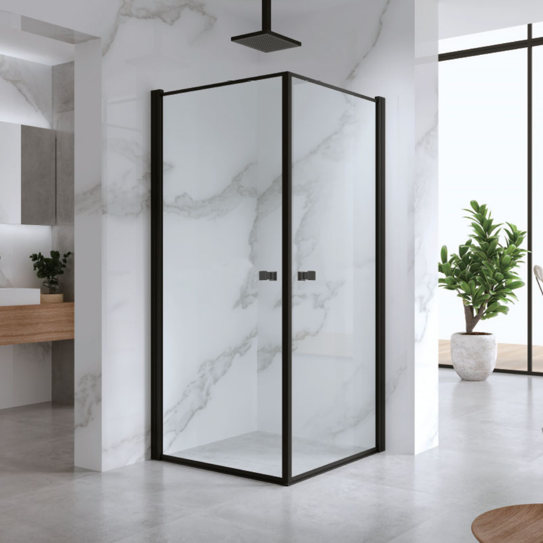 מקלחון פינתי 2 דלתות ,פרזול שחור.