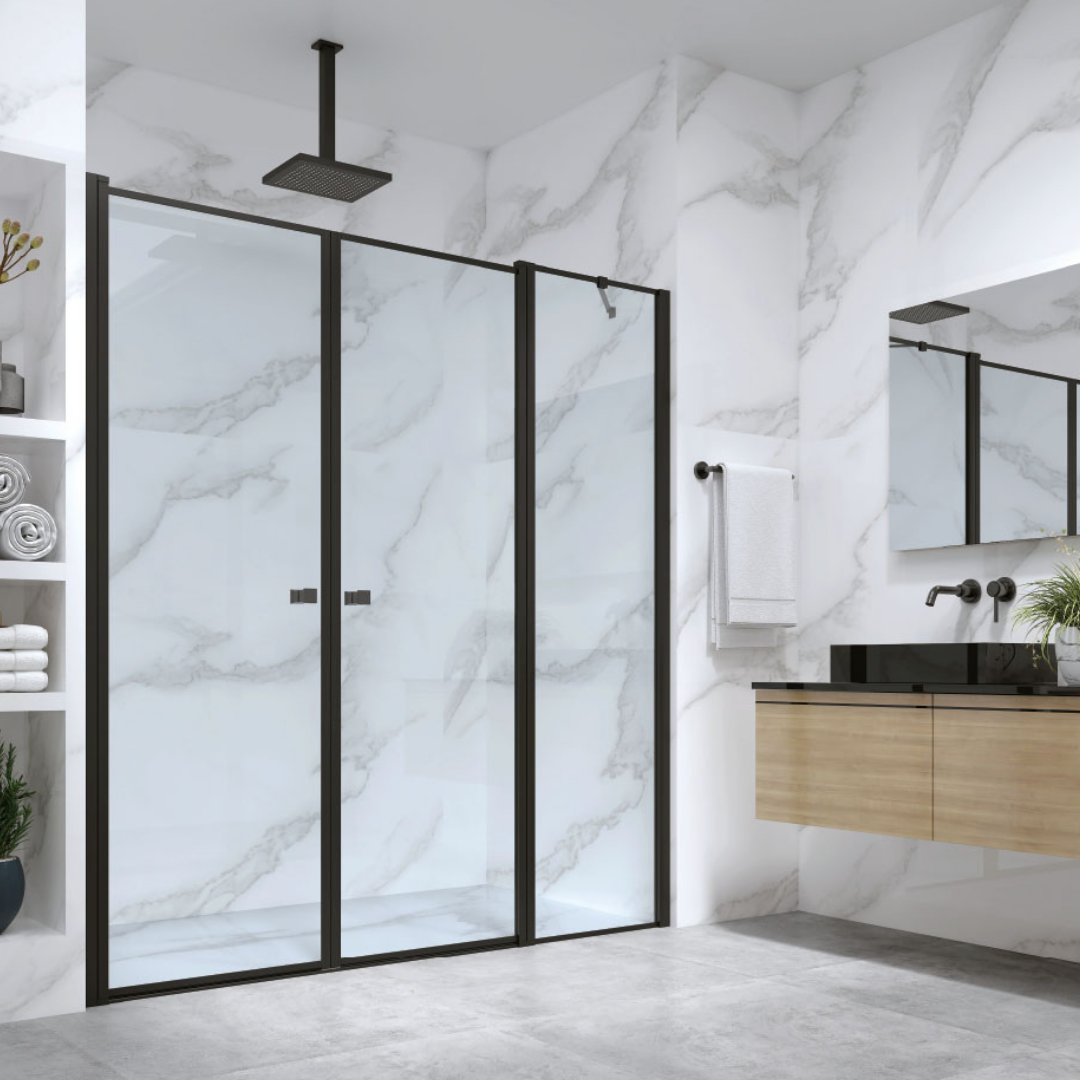 -מקלחון מרהיב המורכב מדופן קבועה+2 דלתות הנפתחת פנימה והחוצה.