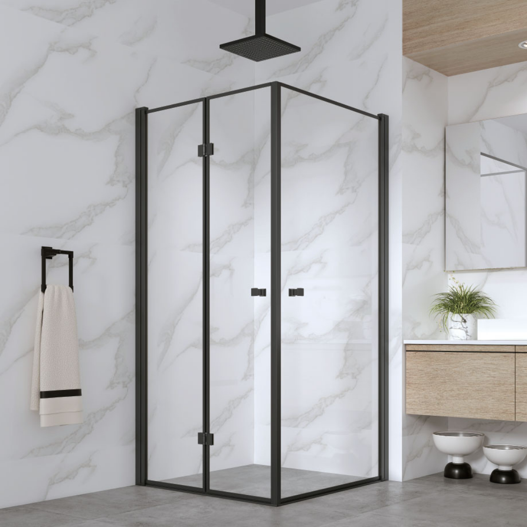 מבנה: דלת על ציר, נפתחת פנימה והחוצה עם דופן קבועה ודלת הרמוניקה מתקפלת ונצמדת לקיר. גובה 190 ס”מ. להתקנה על גבי ריצוף או אגנית.