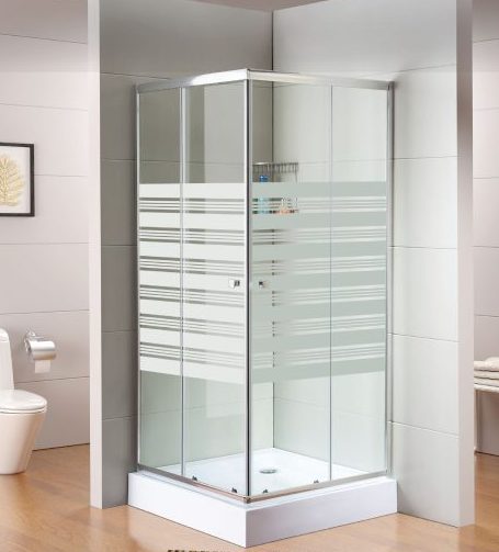 מקלחון פינתי – מידות קבועות מבנה: 2 דלתות נפתחות בהזזה על מסילה ו2- דפנות קבועות. גובה 185 ס”מ. להתקנה על גבי ריצוף או אגנית. פרזול: גלגלי אל חלד, ידיות מעוצבות ומגבי אטימה. פרופיל כרום. סגירה מגנטית. זכוכית: 6 מ”מ מחוסמת,