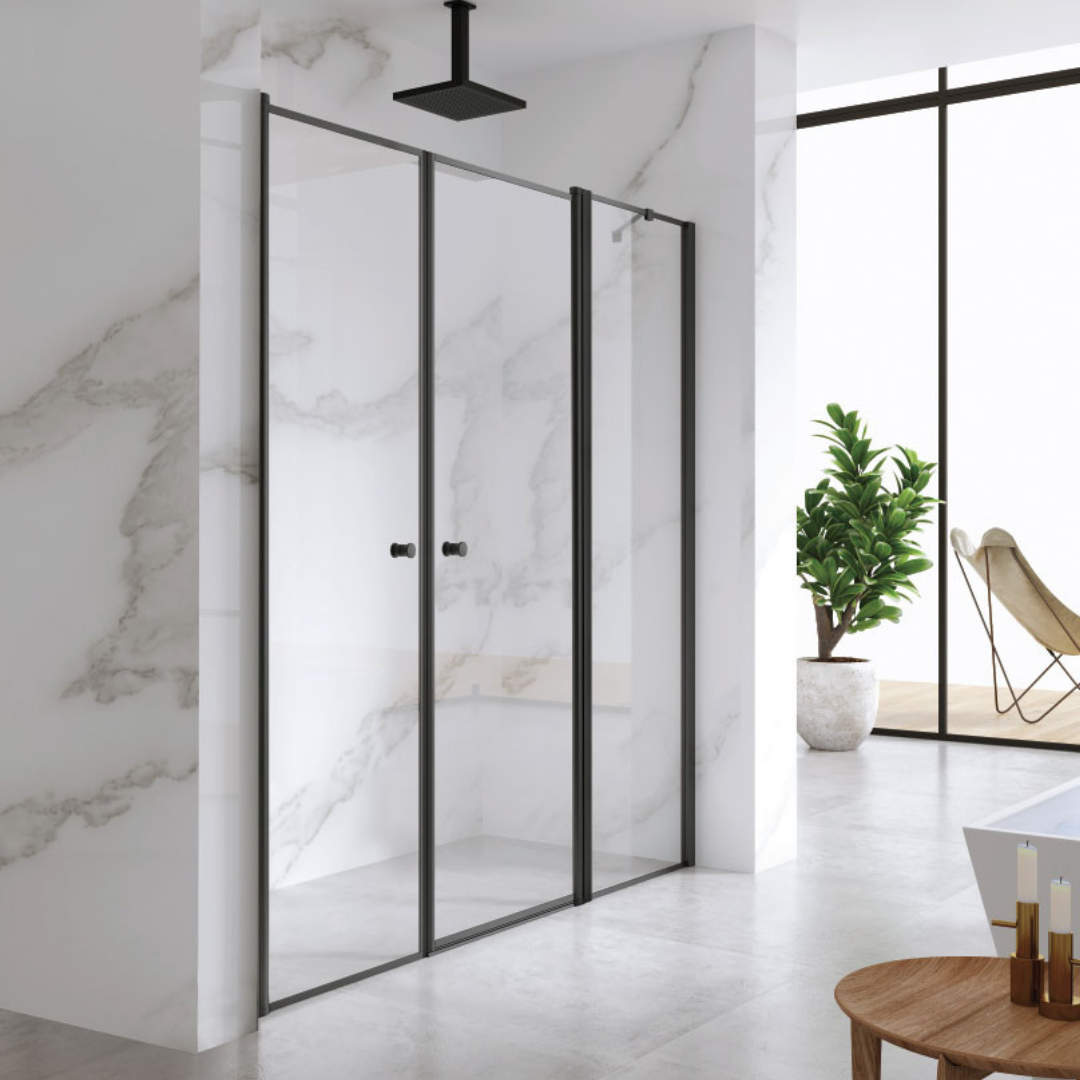 מבנה: 2 דלתות על ציר, נפתחות פנימה והחוצה ודופן אחת קבועה. גובה 185 ס”מ. להתקנה על גבי ריצוף או אגנית.