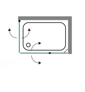 מבנה: 2 דלתות על ציר, נפתחות פנימה והחוצה ודופן אחת קבועה. גובה 190 ס”מ. להתקנה על גבי ריצוף או אגנית.