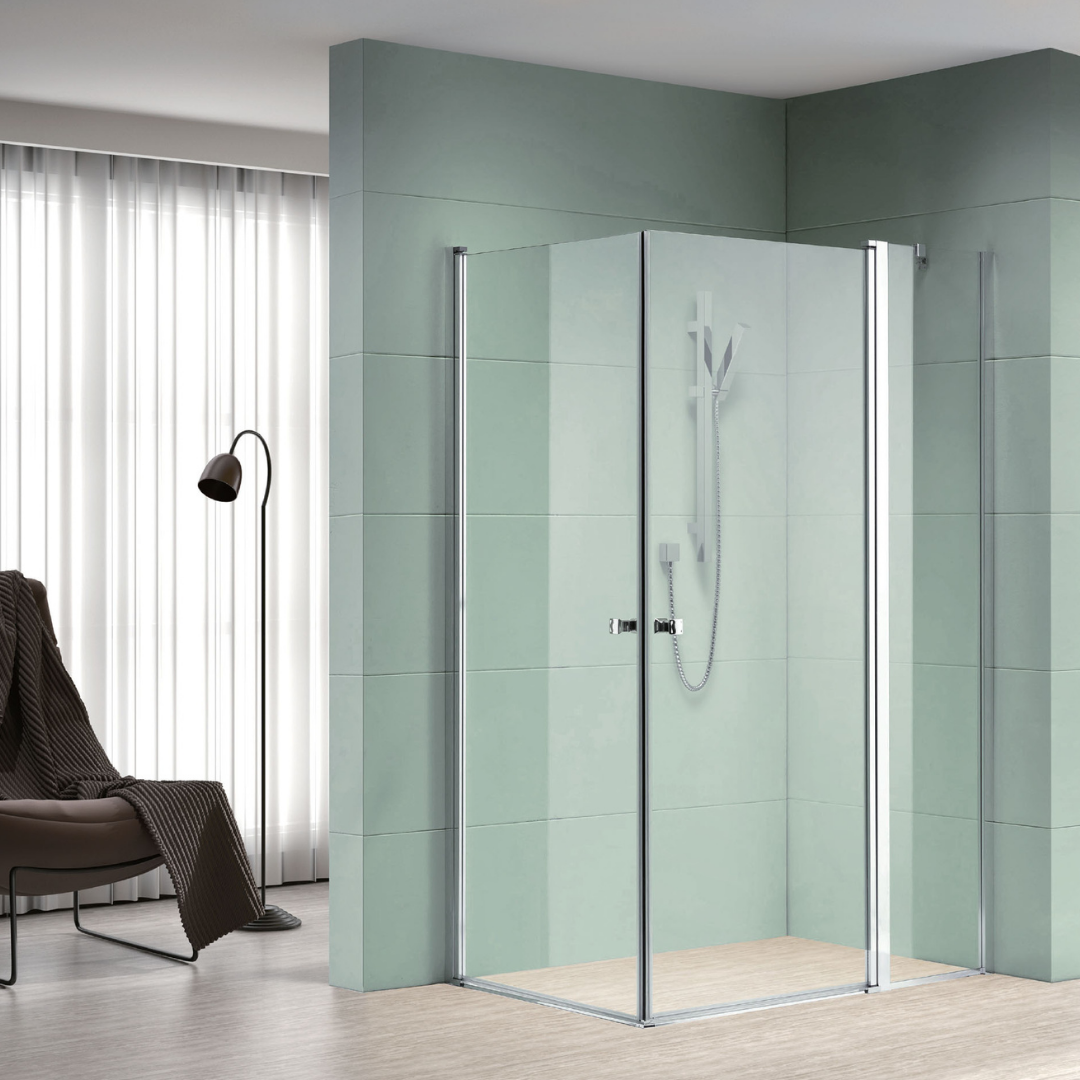 מבנה: 2 דלתות על ציר, נפתחות פנימה והחוצה ודופן אחת קבועה. גובה 190 ס”מ. להתקנה על גבי ריצוף או אגנית.